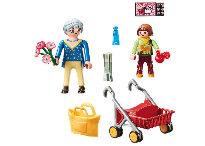 Hoy la abuela recibe la visita de su pequeña nieta en el hospital. La anciana espera a la niña frente a la entrada y está contenta con las flores y el chocolate. Pone todo en su bolso en el andador y salen a caminar. El juego contiene dos figuras PLAYMOBIL®, un andador, una bolsa, un ramo de flores, chocolate y otros accesorios.