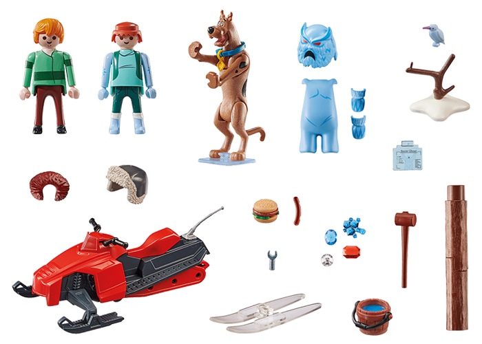 Incluye Scooby y Shaggy con moto de nieve. El fantasma puede ser desenmascarado. ¡Scooby y Shaggy con ropa de invierno para coleccionar!
