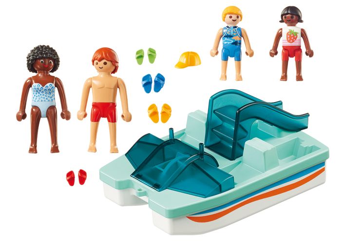 ¡La manera más divertida de pasar un día de Playa! La barca a pedales de Playmobil flota y se puede incorporar un motor sumergible (código 7350, no incluido). Tiene capacidad para cuatro personas. Dimensiones: 16 x 10 x 7 cm (LxWxH).