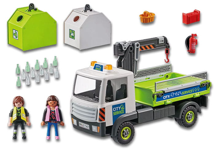 Cuidar del medio ambiente es divertido con el Camión de Residuos con Contenedor de PLAYMOBIL. Con la ayuda de la grúa giratoria, el banco de botellas se puede cargar en el camión en poco tiempo. Para vaciar las botellas, el contenedor se inclina hacia un lado. Con numerosos detalles y funciones realistas, los sets de limpieza de PLAYMOBIL City Life invitan a los niños y niñas a partir de 4 años a experimentar y reproducir la protección ambiental de cerca.
