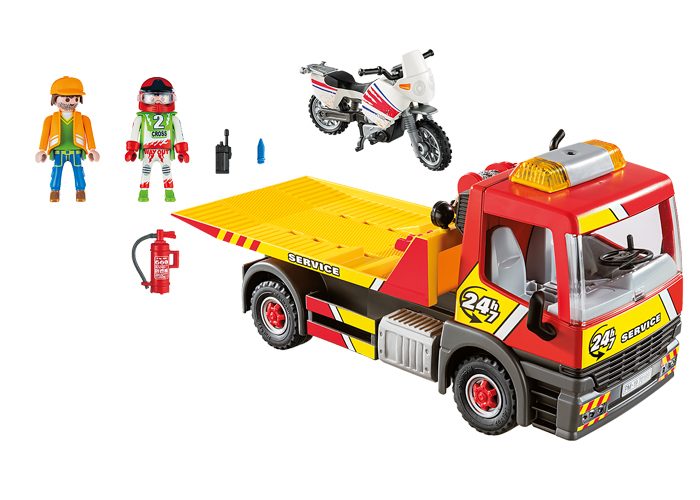 La grúa con luz intermitente (pilas incluidas) está en servicio durante todo el día. Incluye moto de motocross.