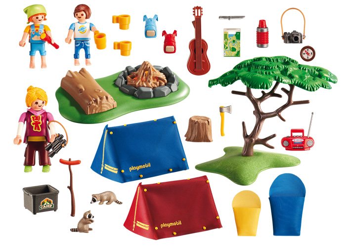 Ha caido la noche en el campamento de verano, los Playmobil han encendido una Fogata para pasar la noche.