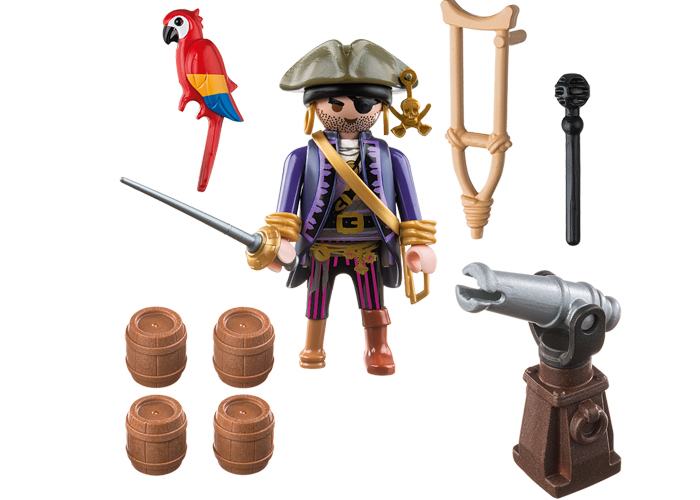 Playmobil 6684 Capitán Pirata con cañones, barriles de pólvora y papagayo.