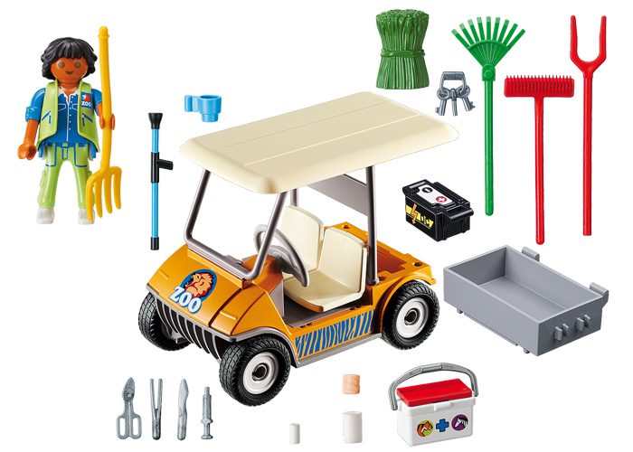 Conduce por el zoológico, transporta los alimentos y limpia el parque zoológico con este carrito del empleado del zoo :)