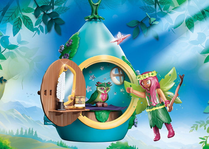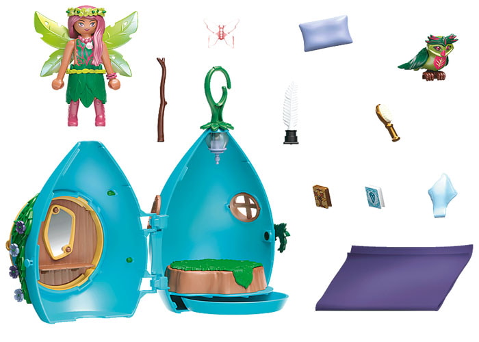 La acogedora casa de hadas, amueblada, es el hogar de las hadas individuales. Con la ayuda del gancho se puede colgar en el árbol de la comunidad o en la habitación de los niños y niñas. Se puede decorar con pegatinas de estrellas brillantes. ¡Incluye un compartimento secreto!