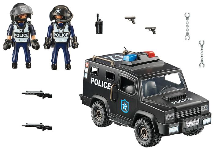 Protege la ciudad con el Vehículo de la Unidad Táctica. Cada agente de policía está equipado con chaleco, guantes, casco y una careta para su seguridad. Utiliza las luces intermitentes para alertar a los civiles de que hay una misión en marcha.