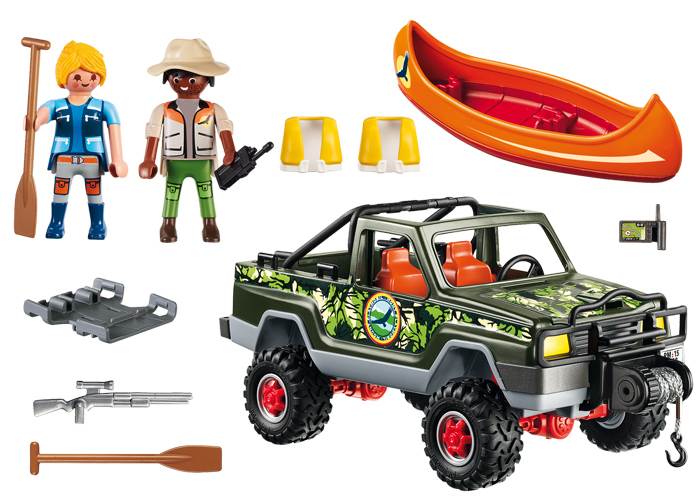 Preparate para la aventura con el coche pick up. No habrá terreno que se resista, incluso podrán atravesar ríos con su canoa. ¡Únete a la aventura!