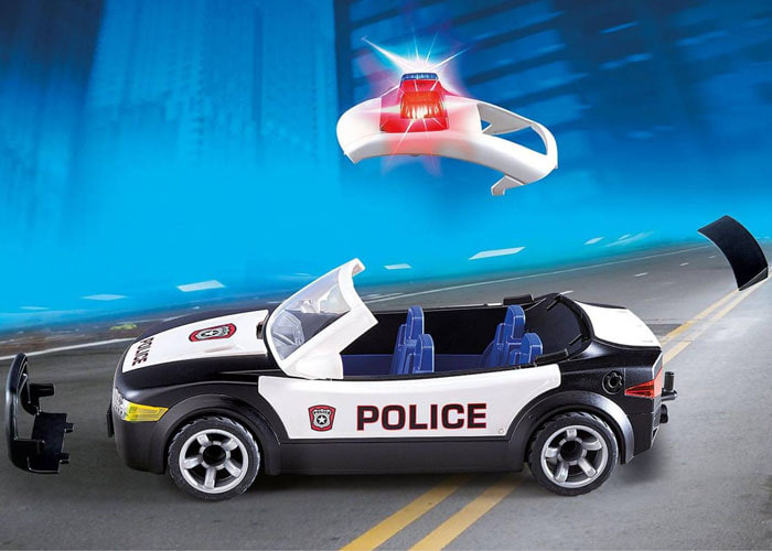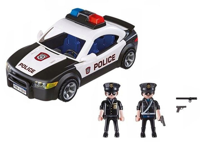 Incluye coche con luces, dos figuras y dos armas. Con espacio para cuatro figuras en el coche