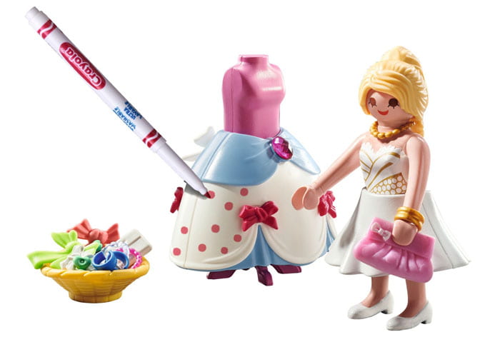¡Dale color al juego con PLAYMOBIL Color! Crea ropa elegante para la noche y diseña diferentes vestidos y faldas con los lápices incluidos una y otra vez. El color se puede lavar fácilmente, ¡para una diversión interminable!