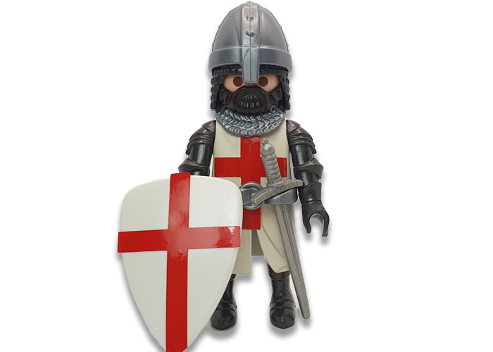 Esta figura está customizada con piezas originales y se ha pintado el torso. Las cruces de pecho y escudo son vinilo adhesivo de alta calidad.