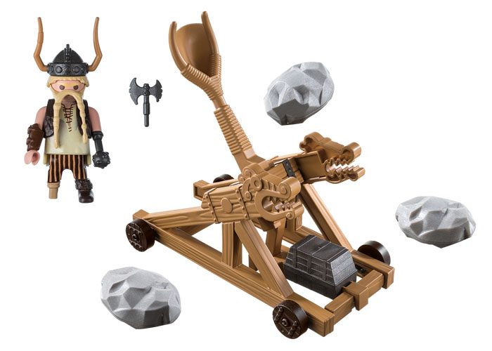 Playmobil 9245 Bocón el Rudo con catapulta para la defensa de Mema. Las armas son intercambiables en su brazo.
