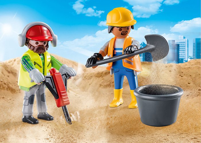 Playmobil 70272 Duo Pack Trabajadores Obreros de construcción, con martillo neumático, pala y cubo.