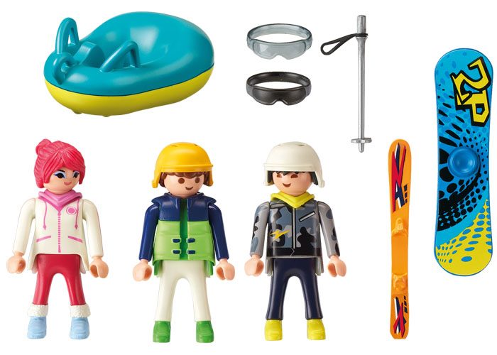 Grupo de esquiadores de la nueva serie de invierno de Playmobil. Playmobil 9286 Esquiador, Snowboarder y chica con Trineo. Diviértete en la nieve ya sea esquiando, surfeando o con trineo. Incluye 3 figuras.