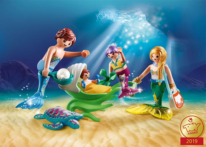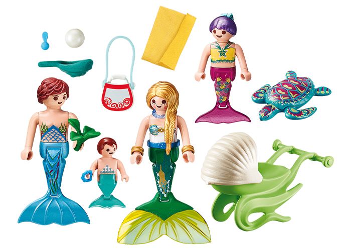 Caminata submarina con toda la familia. El bebé está feliz y también la tortuga está feliz con el viaje. Con perla para coleccionar.