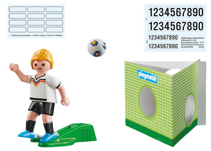 La figura tiene gatillo para chutar, incluye balón y portería de cartón para el entrenamiento de tiros.