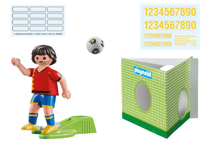 La figura tiene gatillo para chutar, incluye balón y portería de cartón para el entrenamiento de tiros.