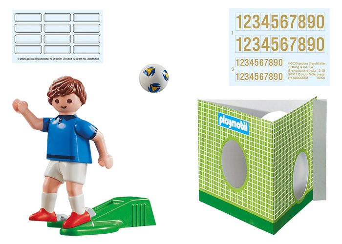 La figura tiene gatillo para chutar, incluye balón y portería de cartón para el entrenamiento de tiros.