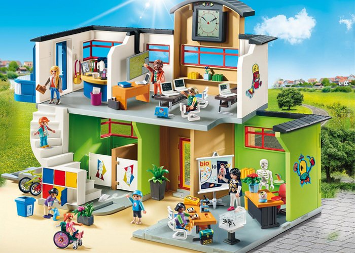 Colección ampliable con el gimnasio 9454 y la lección de historia del aula 9455.