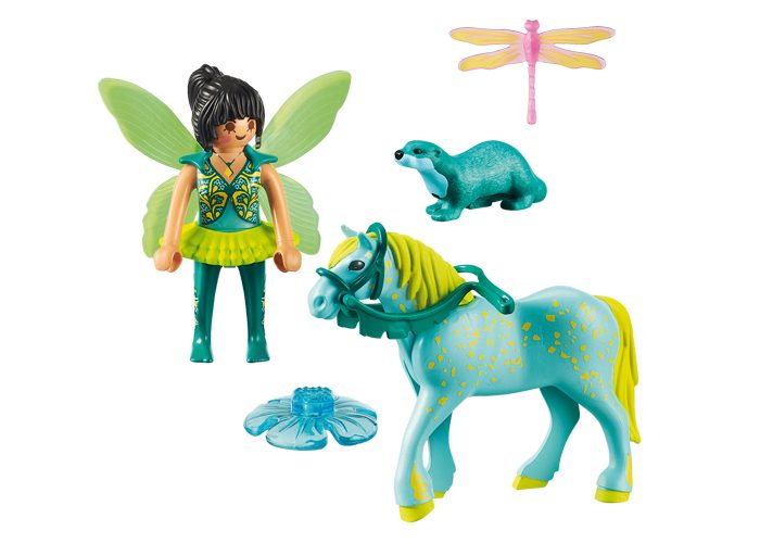 Las libélulas y las nutrias del bosque se acercan para contemplar su belleza: El caballo Aquarius pasea por el bosque junto a las hadas, ¡su colorido deja sorprendido a todos los seres del bosque!