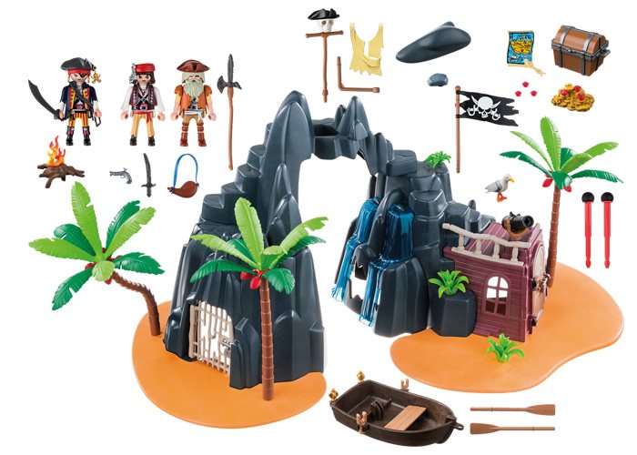 Incluye cañon que lanza proyectiles, bote de remos, varias trampas, prisión y cueva oculta.