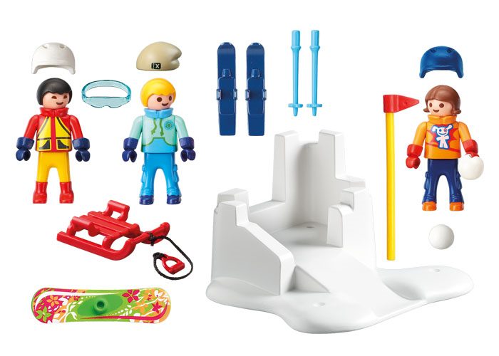 Playmobil 9283 Guerra De Bolas De Nieve. Divertida pelea de bolas de nieve. Incluye bolas de nieve, trineo, equipo de esquí: tablas de snowboard, cascos, gafas...