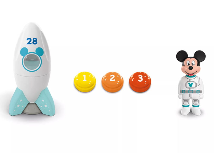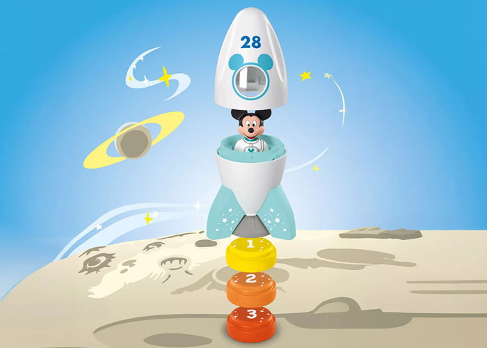 Playmobil JUNIOR & Disney: la aventura espacial de Mickey Mouse. Mickey Mouse, el ratón de Disney, se embarca hoy en una gran aventura: se dirige al espacio. ¿Quién ayudará a Mickey en su gran aventura? Hay que preparar el cohete para el lanzamiento. Edad recomendada: A partir de 1 año.