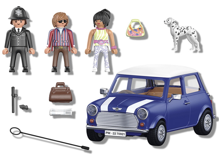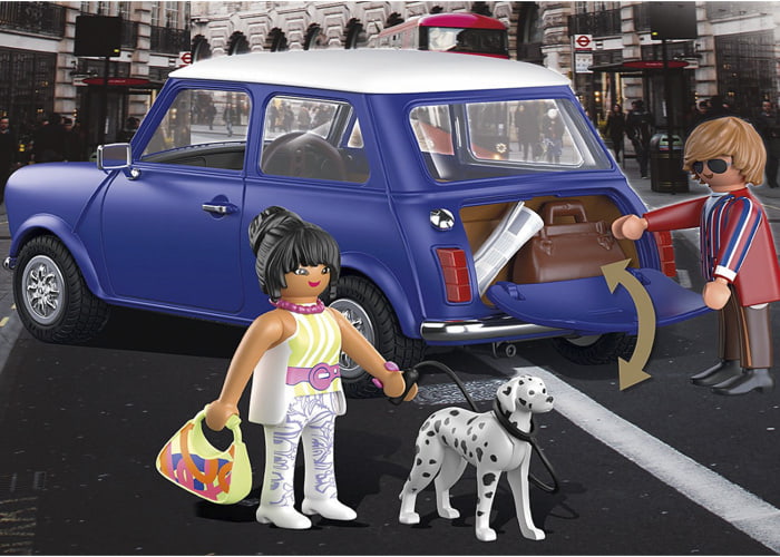 Dentro de su colección de vehículos clásicos, PLAYMOBIL llega a un acuerdo con MINI para lanzar este modelo de colección del mítico icono británico del automovilismo en versión «click» junto a figuras y accesorios para recrear una escena londinense de los años 70.