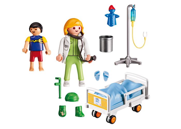 La pediatra hace la revisión en el Hospital Infantil, parece que el pequeño Playmobil está recuperado ¡Pronto podrá seguir jugando con normalidad!