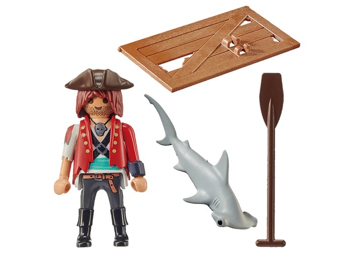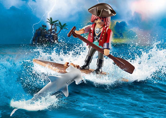 Playmobil 70598 Pirata con balsa y tiburón martillo.