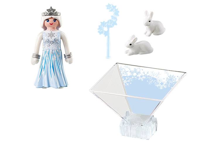 Nueva colección de princesas del hielo. Set compuesto por figura de princesa, pequeños animales y proyector de holograma en forma de pirámide con el que puedes proyectar un holograma en el medio de la pirámide usando un teléfono inteligente o tablet y la nueva aplicación de video Playmobil.