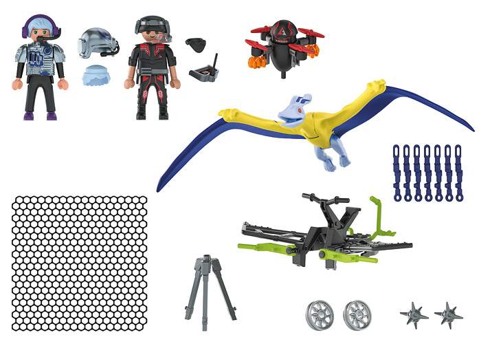 El Pteranodon está equipado con piezas para lanzar en la red como proyectiles, la figura puede montar en el pteranodon