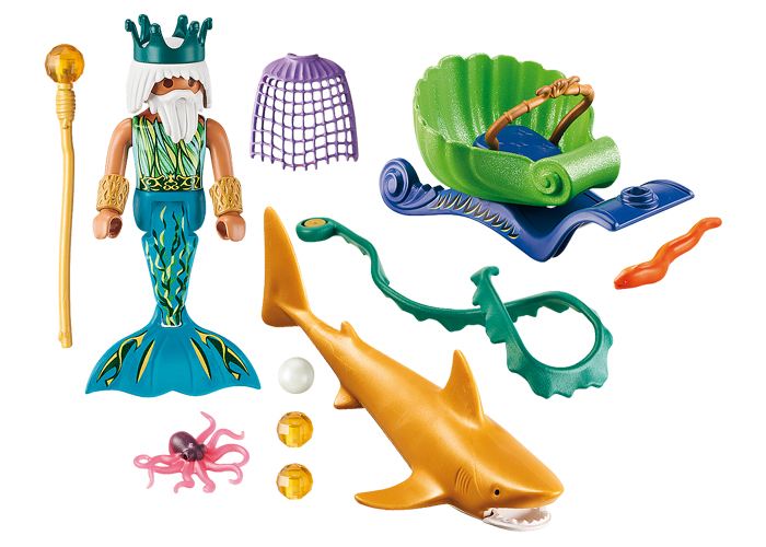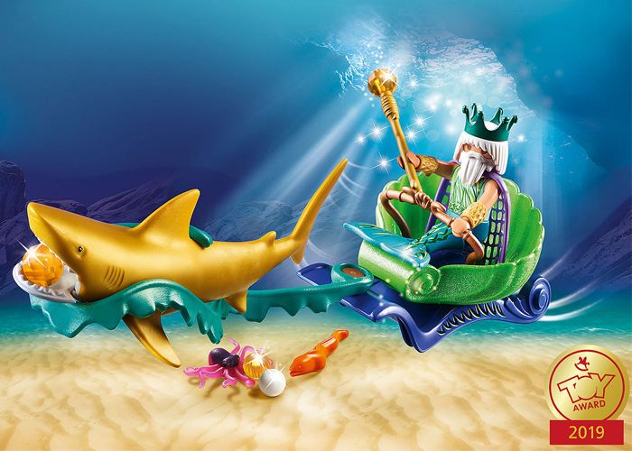 Playmobil 70097 Rey Del Mar con carro tirado por tiburon.