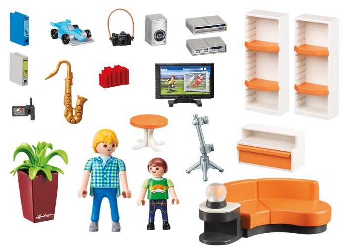 Playmobil 9267 Salón moderno para amueblar y completar la casa de la referencia 9266. Con todo lo necesario para decorar tu salón y una lampara de mesa que se enciende.