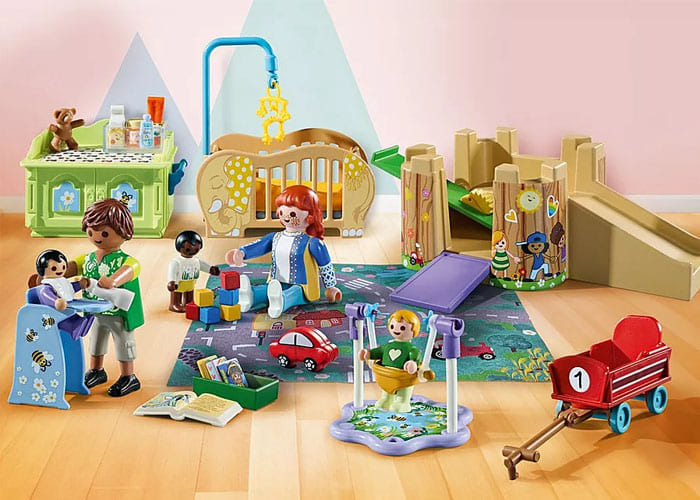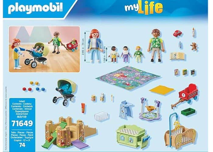 n la infancia, se anima a niñas y niños a jugar y aprender mediante actividades lúdicas. Listos para la próxima excursión, hay un cochecito doble y un vagón. Completo con cambiador, cuna, tobogán y muchos más accesorios. ¡Los Promo Packs PLAYMOBIL ofrecen diversión extra grande a un precio pequeño! Este adorable set de juego PLAYMOBIL incluye cinco figuras PLAYMOBIL, una torre de juego con tobogán, varios juguetes, una cuna de bebé y muchos extras para un sinfín de aventuras creativas de rol.