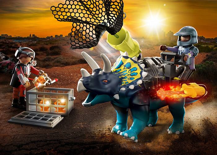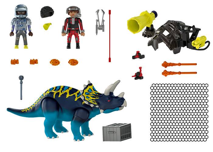 Equipado con un cañón de red de seguridad, armadura extraíble, la figura puede montar en el triceratops.
