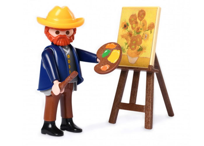 Ideal para amantes del arte o amantes de Playmobil, ¿o quizás ambas cosas? Edición especial de del pintor Vincent Van Gogh, con un caballete, una paleta de pintura y la obra Los Girasoles.