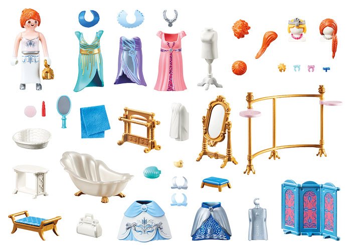 En el baño real, la princesa se viste para el próximo baile en el gran palacio de la princesa.