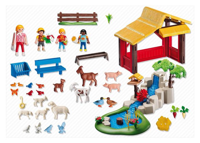 Playmobil 4851 Zoo Recinto de animales con estanque de patos y cascada de agua con rueda hidráulica en movimiento.